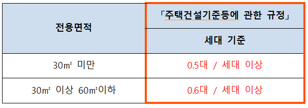 2. 세대당 전용면적이 60㎡ 이하 : 0.8대